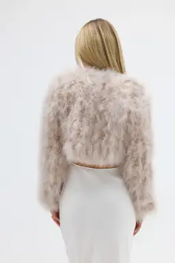 Bubish Luxe Manhattan Crop Feather Blush Jacket Size 10