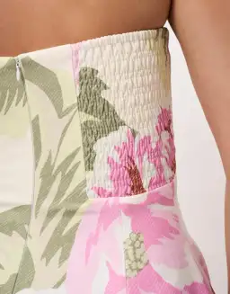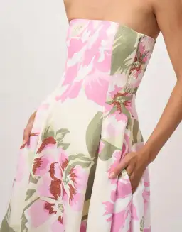 A structured design with a feminine silhouette, the Carrie Strapless Dress from BY JOHNNY. sits straight across the chest and fitted through the bodice to the waist where it flares into a structured A-line shape. Canvased in a truly unique crinkle textured fabrication, allowing the garment to be styled from day to night. Wear with sandals for a daytime event look or pair back with heels for an evening look.