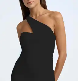 flattering asymmetrical neckline and fitted bodice, this piece exudes sleek sophistication for wherever the season takes you.