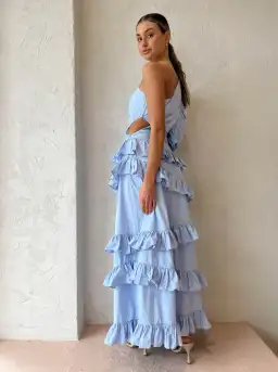 Add a touch of femininity to upcoming occasions with the By Nicola Adrift frill maxi dress in blue.