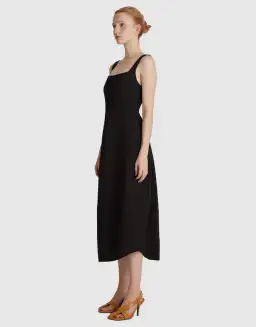With a full skirt, classic squared neckline and panelled bodice detail, the Brae Dress is a tailored take on the timeless black midi dress.