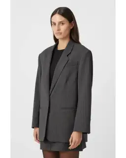 The Brancusi Blazer epitomises bold sophistication with its oversized silhouette and exaggerated shoulders, offering a contemporary twist on traditional menswear-inspired design. Crafted from premium pinstripe fabric, this statement piece exudes confidence and refinement, seamlessly blending masculine tailoring with feminine flair. The Brancusi Mini Skirt is crafted from a wool blend pinstripe fabric in a flattering silhouette designed to sit comfortably at the low to mid waist, accentuating feminine curves. With its adjustable waistband, it offers the perfect fit for any occasion, seamlessly transitioning from office elegance to evening allure.