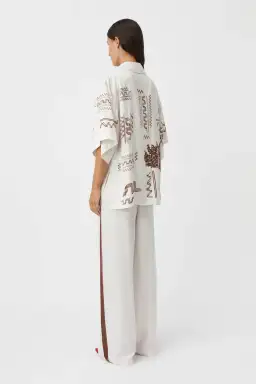 The Cassia Pant is cut from a lightweight fabrication that effortlessly drapes the body. The relaxed wide-leg silhouette embodies a timeless elegance, while the exclusive print adorning the side exudes an allure of individuality.
