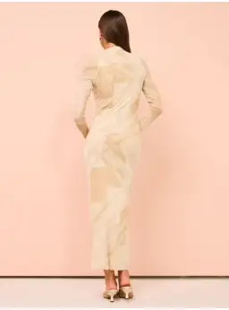 Crafted from a semi sheer fabrication, this maxi dress boasts a high neckline and long sleeves.