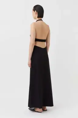 Crafted from a lightweight fabrication in a relaxed maxi silhouette that finishes just below the ankles. This halter neck style is showcased by its knit feature at the front and cut-out waist detailing.