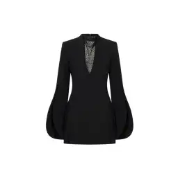 The Sillage Mini Dress embodies refined femininity with its structured silhouette and shaping seams, designed to flatter effortlessly. A contrast lace underlayer adds a contemporary touch to the classic scoop neckline, while front sleeve vents with rounded cuffs offer a modern edge. Fully lined for a polished finish, this versatile piece is perfect for any occasion.