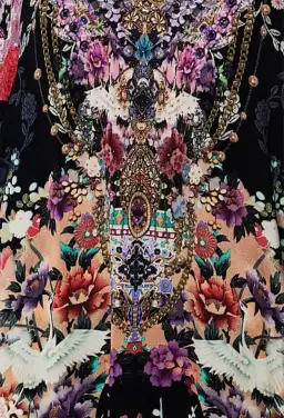 Revealing sacred rituals of womanhood, the Nights With Her Bat Sleeve Dress evokes Japan's romantic cherry blossoms with an alluring hand-painted print. Styled into a free-flowing silhouette with wide sleeves, delicate crystal embellishment and a sensuous short length, this captivating printed dress is perfect for embracing your feminine spirit. - Bat Sleeve Dress