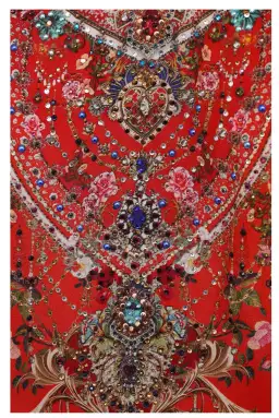 Framed with contrast hems, the Cameos Can Can Drop Shoulder Playsuit is an image of fun festival energy. Styled with exaggerated split sleeve, the pure silk body is given shape with an elasticated waistband. Pockets add function whilst an all-over summer red floral print, designed for Parisian lovers, is given a luxe finish with hand-placed CAMILLA crystals. Dress up with heels or style with flats for a more casual aesthetic.