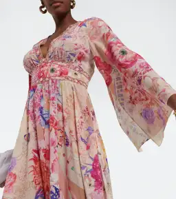 Camilla Kimono Sleeve Dress With Shirring Detail Floral Size 14
