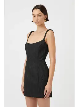 The Malla Dress is an epitome of refined elegance, crafted with a sculpted hourglass silhouette for a flattering shape. This mini dress is detailed with a low neckline and a textured fabrication that has a subtle sheen making it perfect for both daytime events and evening soirées. Elevate your wardrobe with this chic piece, designed to make a statement with its understated allure.