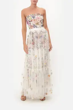 Camilla Queens Bee Hive Bandeau Bodysuit with Frill and Waistband Ruffle Hem Skirt Cream Size AU 10