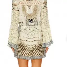 Camilla Silk Playsuit Romper Love Weave Tie Front Wide Sleeve