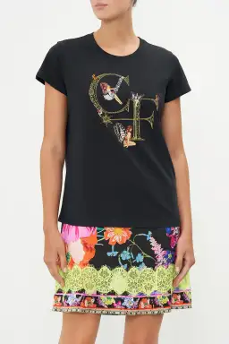 Crafted from breathable cotton, this statement tee features a classic round neckline, hand-embellished CAMILLA crystals, cropped sleeves, a relaxed slim-fit silhouette and ribbed accents at the neckline.