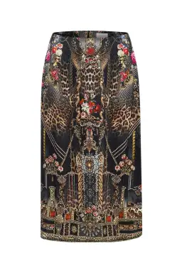 A flattering and fitted option, the Gothic Goddess Slip Midi Skirt enswathes the lower body in rich silk - the romantic print telling a story of candlelight glittering against the stained glass windows of an ancient cathedral.