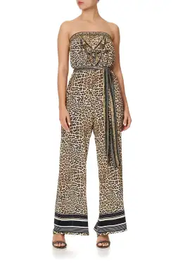 Camilla Tie Waist Strapless Silk Jumpsuit Leopard Print