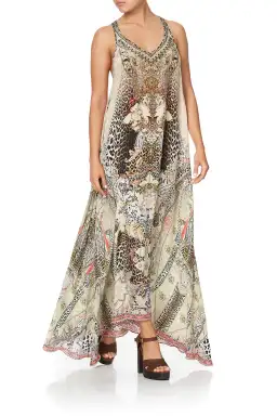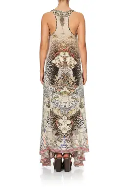 Elegant summer maxi dress, the Forever Forever V Neck Racerback dress depicts the nature of Australia's devine circle of life between flora, fauna and waterways, crafted on a dusty pink canvas with featured bold wild life.This elegant maxi length dress features a relaxed fit, racer back design, flattering v-neckline as well as hand-placed crystal embellishments adorning the decollatage for a seamless day to night transition.