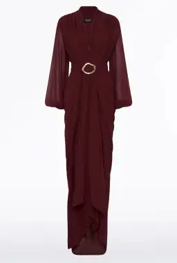 Carla Zampatti Georgette Waterfall Dress in Merlot