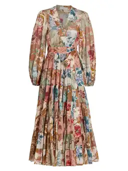 The Cassia Patch Wrap Midi Dress in Patchwork Floral from Zimmermann's Summer Swim 2021 Collection.