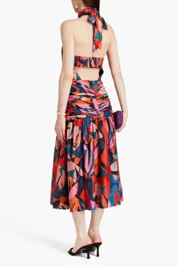 Rebecca Vallance Catalina Halter Neck Midi Dress Multi Colour