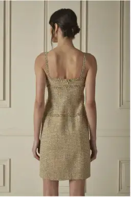 Chanel Tweed Mini Dress Gold Multicolour Size AU 10 / M