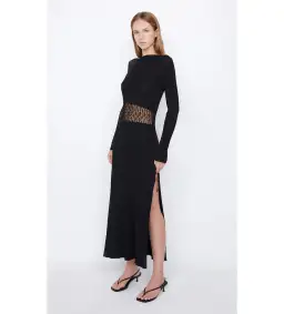 The BEC + BRIDGE Chantelle Long Sleeve Dress is made from a textured knit fabric, with an asymmetric detail through the sleeve and body with crocheting and ribbed contrasts. Two side splits through the skirt for easy movement.