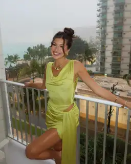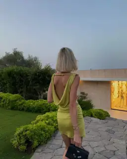 The Chloe Top in Chartreuse. Shaped with a plunging cowl neckline, the Chloe top is made from a heavy-handle slinky viscose, with an asymmetric drape and low back to flaunt your figure. Expertly crafted in Portugal.