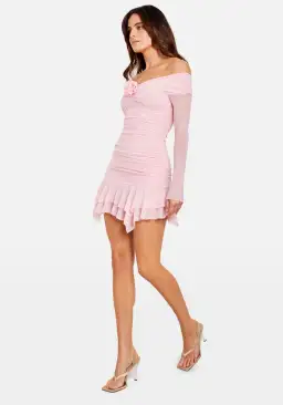 Chosen By Tuchuzy Off Shoulder Mesh Rose Mini Bubblegum in Size M / 10 AU