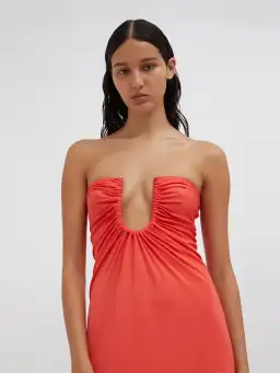 Christopher Esber Arced Palm Strapless Dress in Grapefruit Size 10