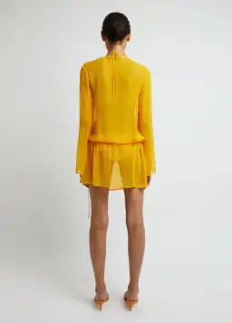 Christopher Esber Silk Springs Side Tie Dress Mango Yellow Size 8