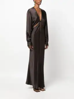 Showcasing Christopher Esber's innovative approach to eveningwear, this long dress is defined by the cut-out details that decorate the front. Cut to a long length, the garment is presented in a full brown hue, allowing the style elements to stand out.