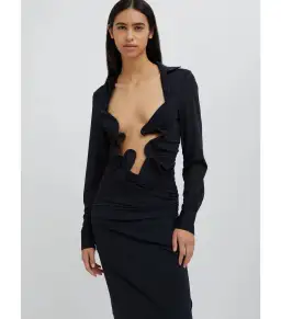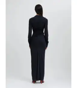 Christopher Esber Venus Plunge Maxi Shirt Dress Black Size AU 6