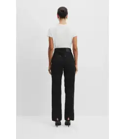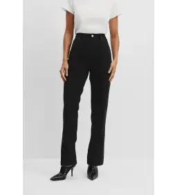 Cut in a high rise silhouette, it features a straight, slim leg silhouette with panel detailing and classic five pocket styling.