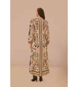 Farm Rio Sand Classic Nature Maxi Dress in Beige Size L/ AU 16
