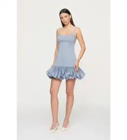 Crafted from a soft sateen cotton fabrication, the Daisy Mini Dress showcases intricate embroidery detailing along the neckline and shoulder straps. Designed to flatter, the fitted silhouette is complimented with bust darts and seam panelling through the body, seamlessly transitioning into a voluminous bubble hem skirt.