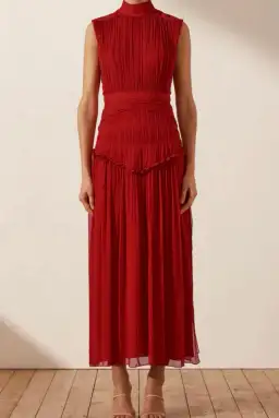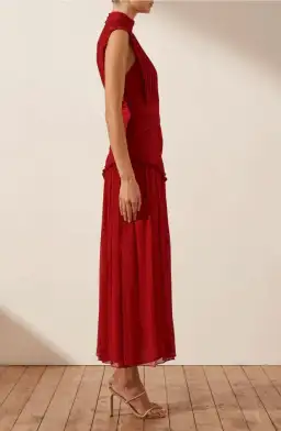 Shona Joy Clemence Lèonie High Neck Midi Dress Red Size 8