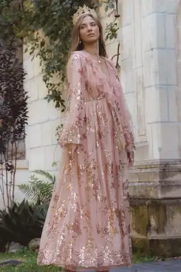 Coven & Co Maternity Melody Sequin Duster Gown Rose Gold Size 12