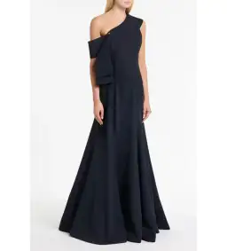 Carla Zampatti Ink Crepe Fascia Asymmetrical Gown Navy Size 12