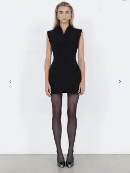 This tailored mini features a cross-neck design, double-breasted front, and capped shoulders. Expertly cut to create a sculpted hourglass silhouette, which is further enhanced by a hidden waist elastic, cinching the waist for a perfectly contoured fit. This dress strikes the perfect balance between structure and femininity, an essential in any capsule wardrobe.