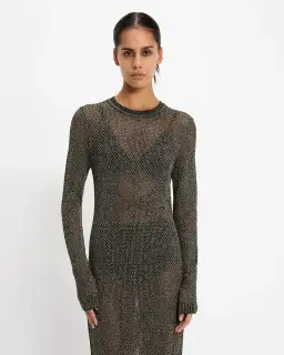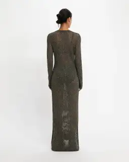 Cue Lurex Crochet Maxi Dress in Gunmetal