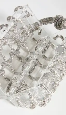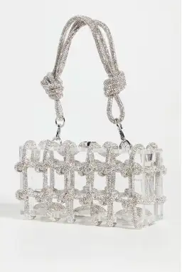 Featuring silver-tone, transparent design, crystal embellishment, rope detailing, clasp fastening, detachable shoulder strap and main compartment.