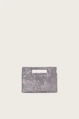 This stunning mini shoulder bag has a dazzling clear rhinestone mesh exterior that will have all eyes on you. A detachable signature gold-toned chain gives this bag versatility to be a top handle or a shoulder bag.