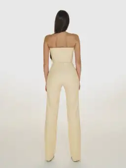 Serving high-octane glamour has never been easier than in our brand-new Killa bundle in Vanilla made of the finest vegan leather. This set accentuates every curve, delivering only jaw-dropping looks. The top is cut in the elegant strapless silhouette, making it a universal staple of your wardrobe. And nothing rather than the matching pants can polish off the outfit. With comfort in mind, the high-waisted Killa pants in Vanilla are a perfect fit for tall people, yet adjustable if they are too long. Your stylish heart is won over when you put on the Killa bundle in Vanilla.
