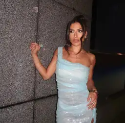 Designed for those nights when you want all eyes on you. It’s made of sky blue sheer net textile covered in glimmering sequins with chic ruching along the sides. Having layers of the fabric to it, the Blu Moon dress is still transparent enough to radiate the airy ease. Topping off that sensation with a flirtatious thigh-bearing slit and hidden side zip, you feel freer than ever.