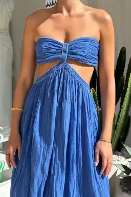 D'Artemide Chloe Strapless Cotton Dress Royal Blue