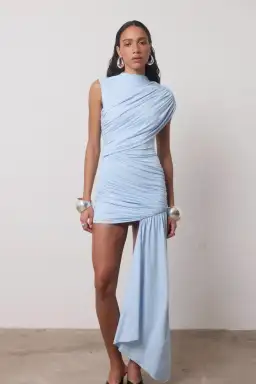 De La Vali Ravenna Draped Jersey Mini Dress in Sky Blue AU 8