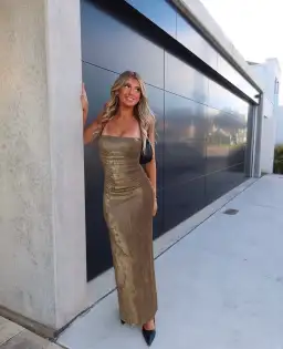 Diesel Metallic Ruched Halterneck Gown Gold Size M / Au 10