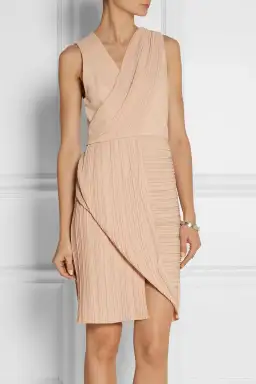 An elegant above knee dress by Dion Lee. Wrap and delicate pleating across the body and hem on the skirt.