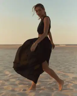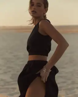 Dissh Dylan Linen Crop and Maxi Skirt Set Black Size 6