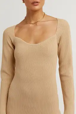Dissh Stride Warm Wheat Knit Midi Dress Beige