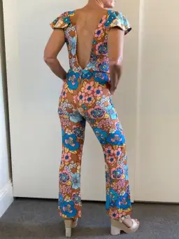 Gorgeous backless and deep v front floral flared jumpsuit.